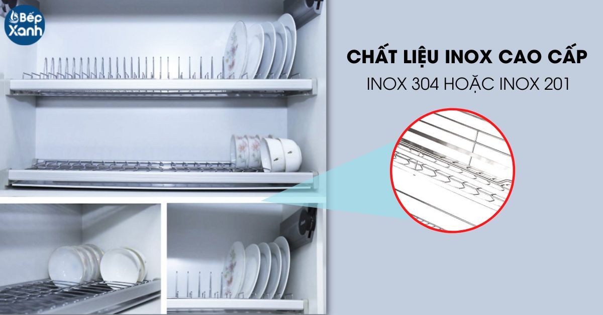 Mặc dù thời gian bảo hành đối với chất liệu inox 201 chỉ được tối đa là 2 năm nhưng đây cũng là loại chất liệu đạt tiêu chuẩn cao cấp của Châu Âu. Bởi vì lẽ đó mà các bộ phận của giá được làm từ chất liệu này cũng đều có thể chống gỉ khá tốt, bền bỉ và trên hết là an toàn với tất cả mọi người. Đây là giá bát cố định giá rẻ nhất trong các sản phẩm được ưa chuộng năm 2022, xét về chất lượng của sản phẩm không thua kém gì so với các loại khác trong top 5 sản phẩm đến từ hãng Eurogold.
