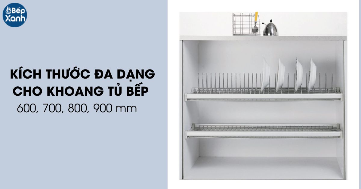 Giá bát cố định Eurogold thườngcó kích thước chiều rộng đa dạng dành cho khoang tủ từ 600, 700, 800 đến 900 mm. Tùy thuộc vào nhu cầu sử dụng mà bạn lựa chọn cho phù hợp. Bên cạnh đó trong các không gian chứa, loại có thể úp được nghiêng và đứng sẽ khác so với loại chỉ có thể úp đứng và loại 2 tầng cũng có sự khác biệt so với loại 3 tầng.