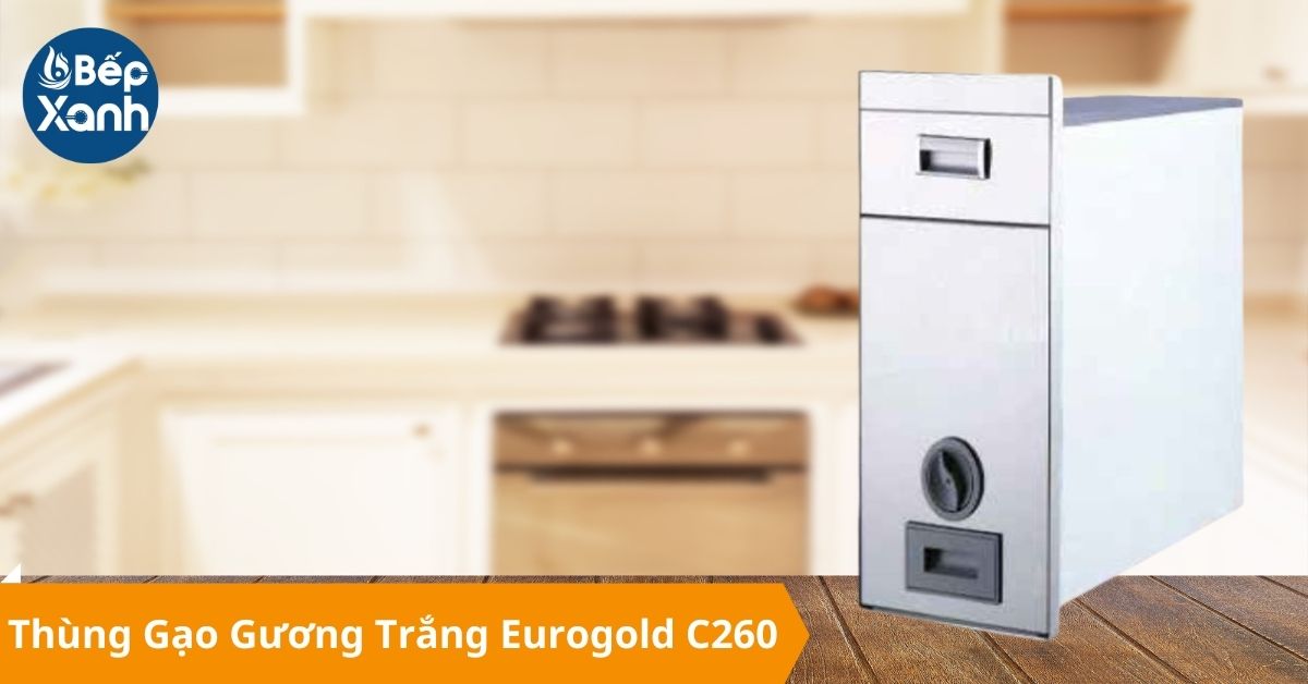 Thùng gạo gương trắng Eurogold C260 luôn được bình chọn là một trong những thùng gạo Eurogold đáng sử dụng nhất. Sản phẩm được làm từ chất liệu cao cấp, cùng thiết kế khép kín giúp hạn chế các tác nhân gây hư hại gạo như chuột, gián, ẩm mốc, … Sản phẩm có kích thước W214*D460*H650 mm phù hợp với các khoang tủ rộng 260 mm. Với màu trắng thời thượng của sản phẩm giúp sẽ bạn dễ phối cùng bất cứ phụ kiện nào trong bếp. Mặt gương phía trước của sản phẩm được tráng bằng thủy tinh có khả năng chịu lực cao, sáng bóng, chống hoen ố, dễ dàng vệ sinh góp phần nâng tầm thẩm mỹ của căn bếp nhà bạn. Đây là một trong những phụ kiện bếp mà gia đình nào cũng nên sở hữu.
