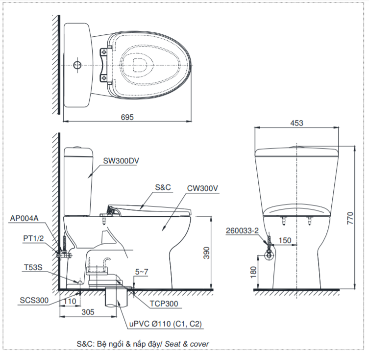 Thông tin cơ bản của bàn cầu hai khối CS300DRW4: