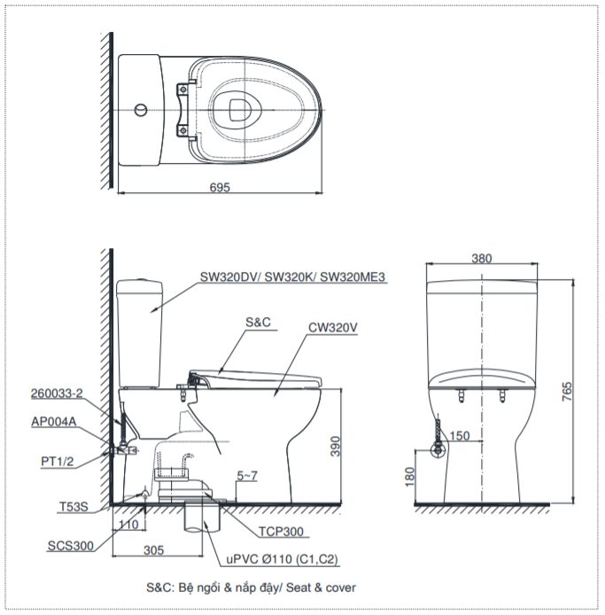 Thông tin cơ bản của bàn cầu hai khối CS320DRW6: