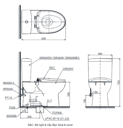Bồn cầu TOTO CS320DRW7 bao gồm