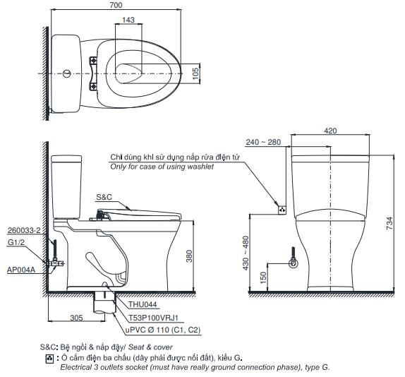Bàn Cầu Hai Khối ToTo CS735DW6