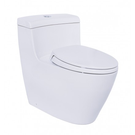 Bồn cầu 1 khối là thế hệ sau của bồn cầu 2 khối. Là đàn em nên bồn cầu 1 khối tích hợp nhiều chế độ tuyệt vời như nắp êm, xả xoáy siêu sạch, công nghệ AquaCeramic chống bám bẩn. Tuy nhiên bồn cầu 1 khối có kích thước khá to nên bạn cần quan sát không gian vệ sinh nhà mình trước khi quyết định lựa chọn