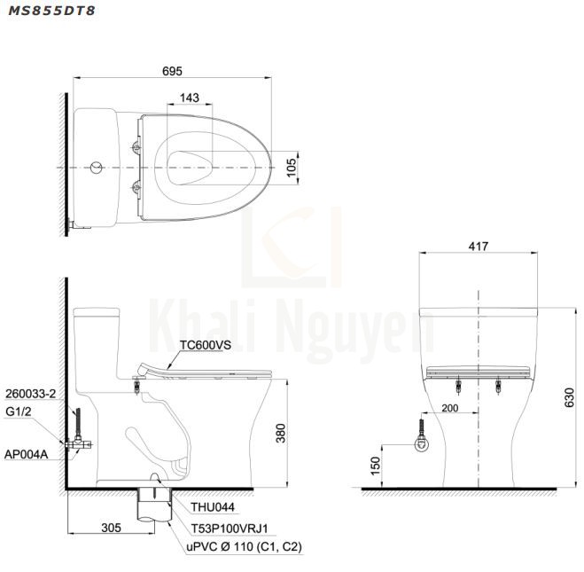 Thông tin cơ bản bồn cầu TOTO MS855DT8