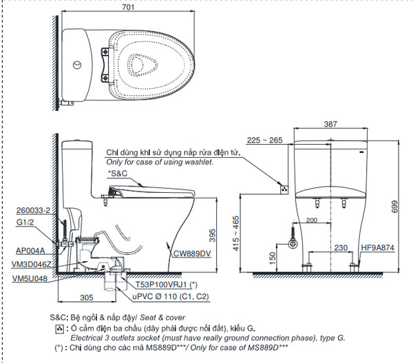 Bản vẽ Bàn Cầu Một Khối ToTo MS889DT8#XW