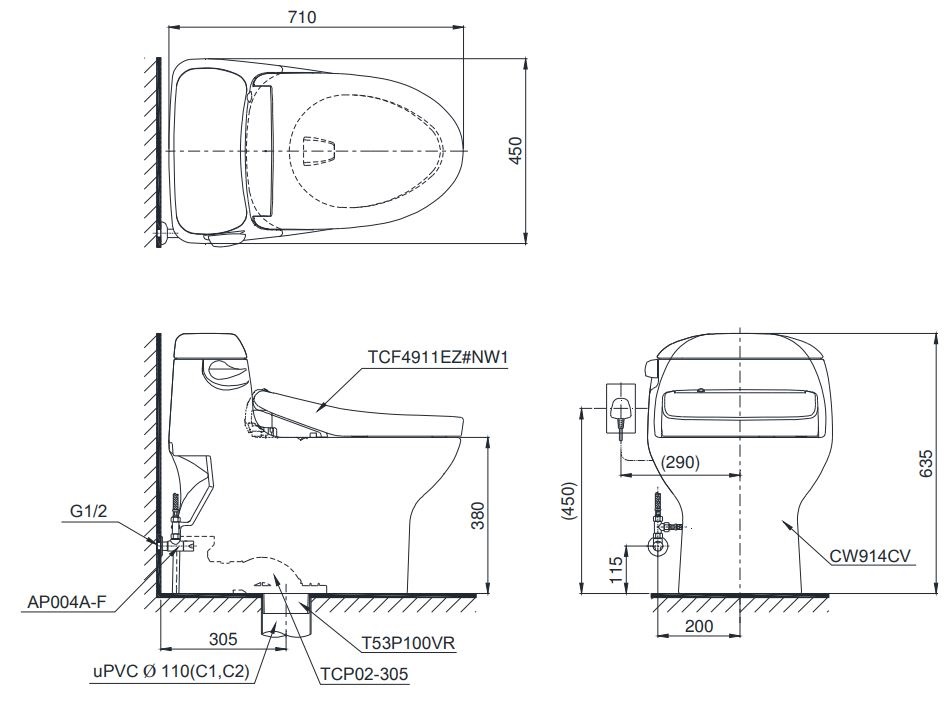 Bản vẽ kỹ thuật Bàn Cầu Một Khối ToTo MS914CRW12#XW