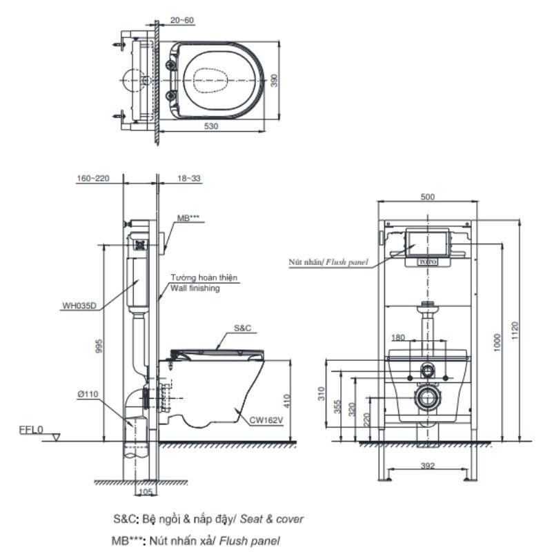 Bàn cầu CW162/TC384CVK thiết kế treo tường sang trọng