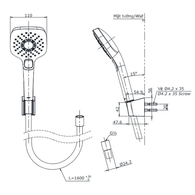 Bát sen phân bổ nước đều, áp lực nước vừa phải 0.05 - 0.75 MPa xả êm và khỏe. Ngoài ra, công nghệ mát-xa trên sen tắm giúp tia nước mạnh nhưng chỉ sử dụng với một lượng nước nhất định bao phủ toàn bộ cơ thể, không hề văng ra ngoài nên tiết kiệm nước tối đa.