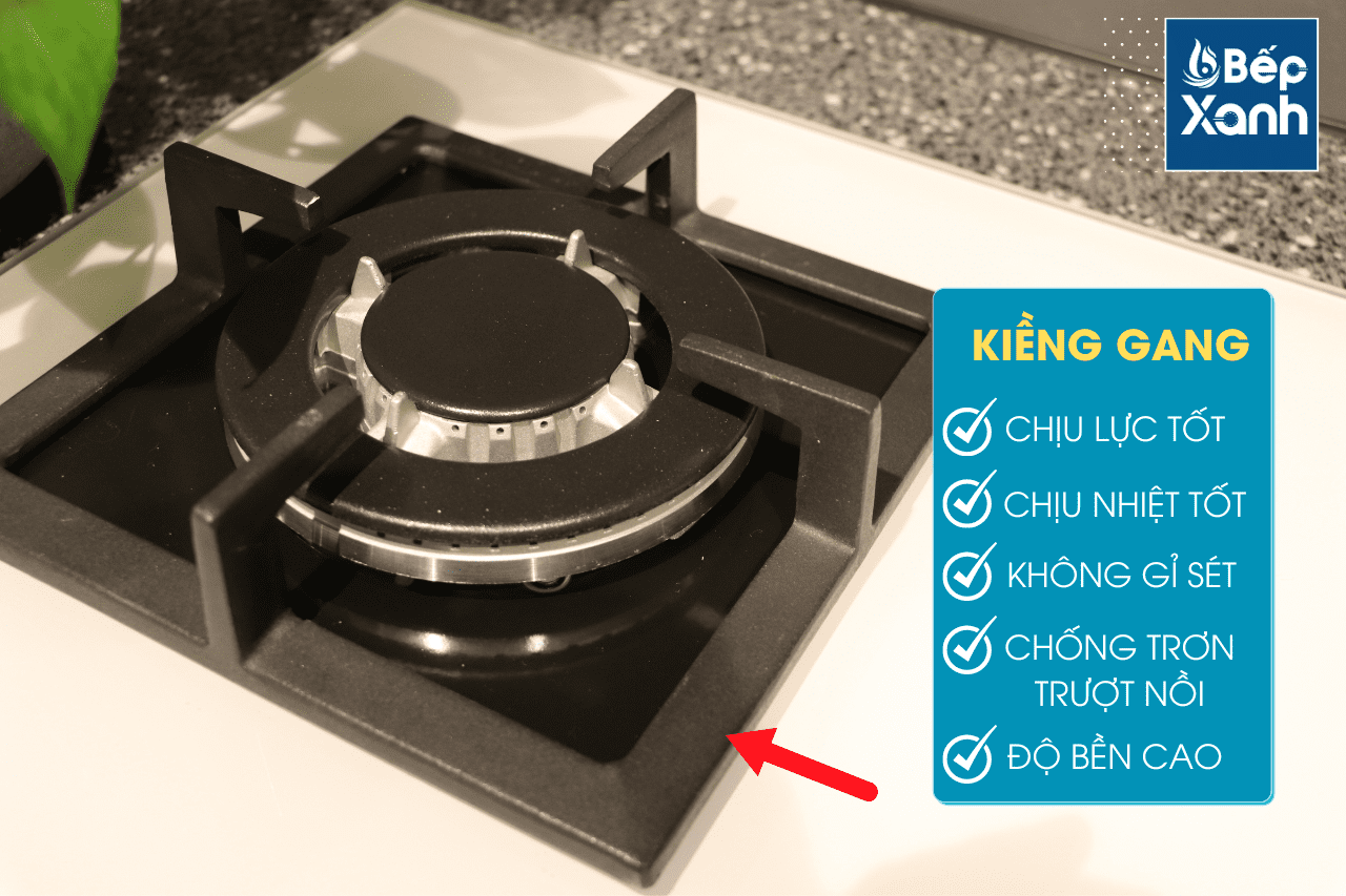 Kiềng gang được sử dụng phổ biến trên bếp gas của Malloca cũng như các thương hiệu khác. Ưu điểm của nó là chịu lực, chịu nhiệt tốt, không bị gỉ sét khi dùng lâu dài. Đặc biệt, thiết kế kiềng theo dạng vuông còn giúp nồi nấu trên bếp cố định tốt hơn, không bị chênh và trơn trượt.