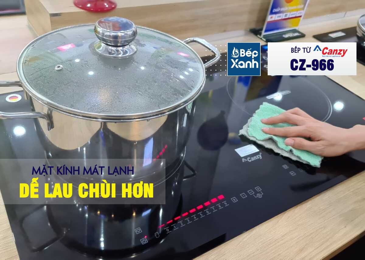 Dễ dàng lau chùi hiệu quả:Là bếp từ hiệu suất cao, nhưng bếp từ Canzy CZ-966 dễ dàng lau chùi ngay cả lúc đang nấu. Mặt bếp luôn mát lạnh, dễ lau chùi trong mọi trường hợp.