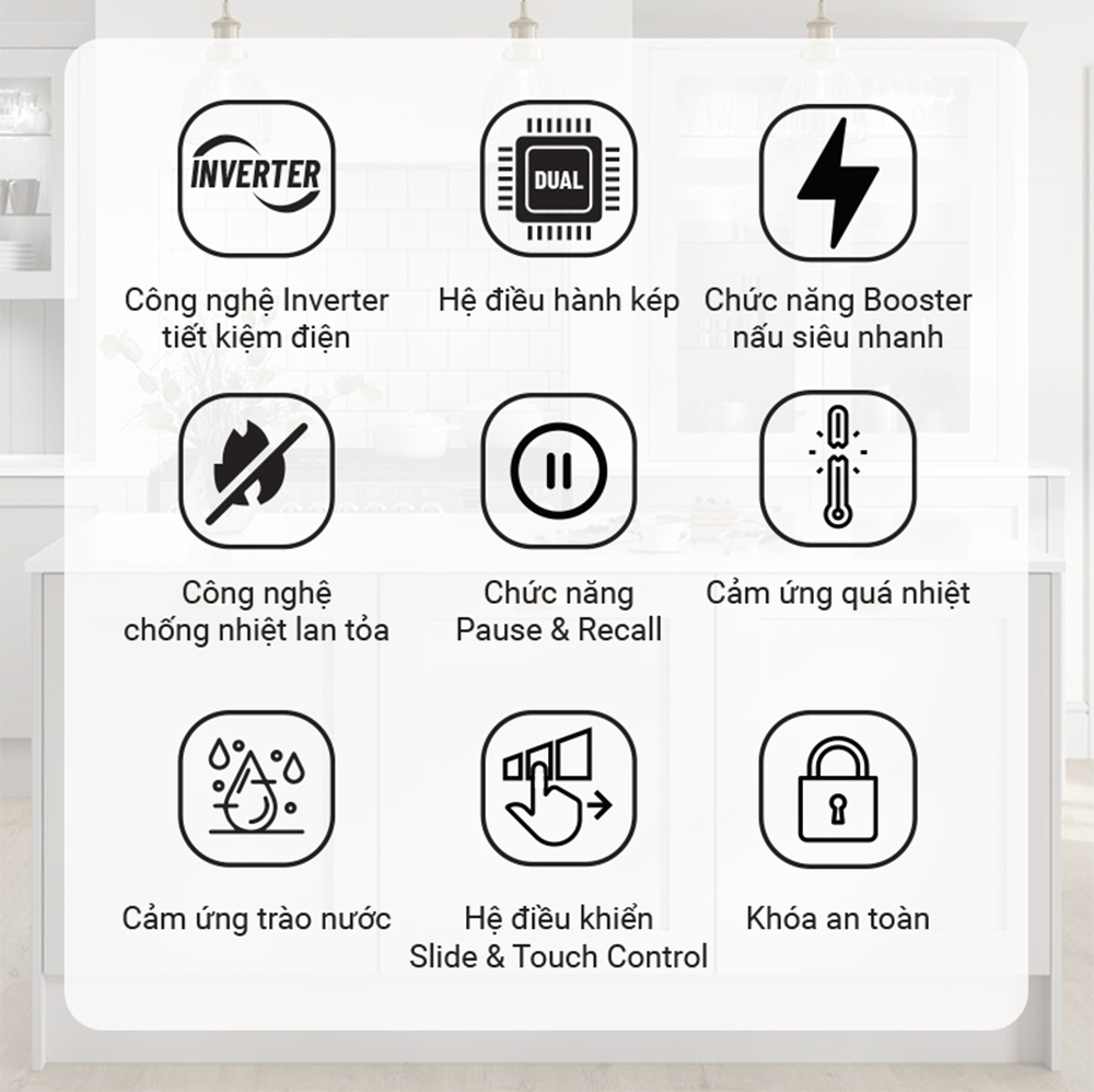 Chức năng Booster nấu nhanh: Chức năng Booster giúp việc nấu nướng diễn ra nhanh chóng, giảm thời gian chế biến món ăn, tiết kiệm chi phí, thời gian và gia tăng trải nghiệm nấu nướng.