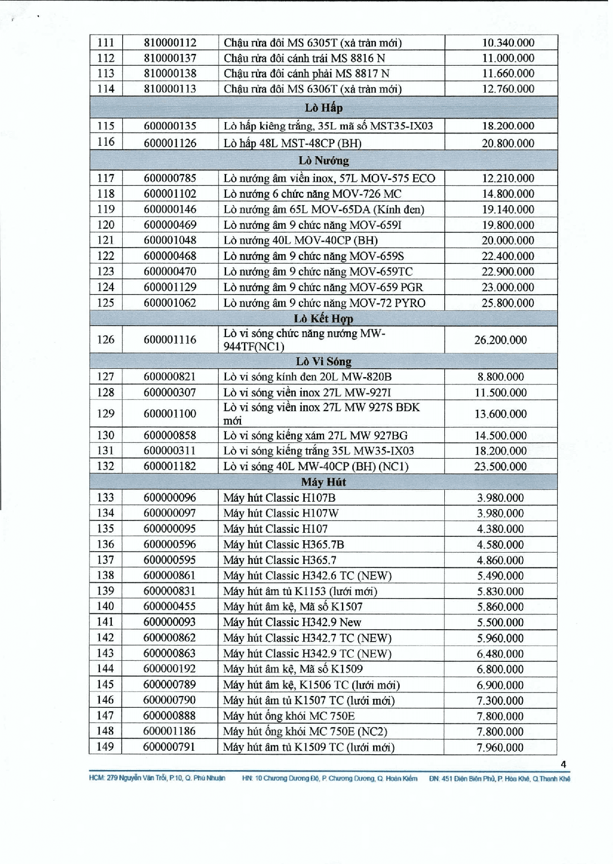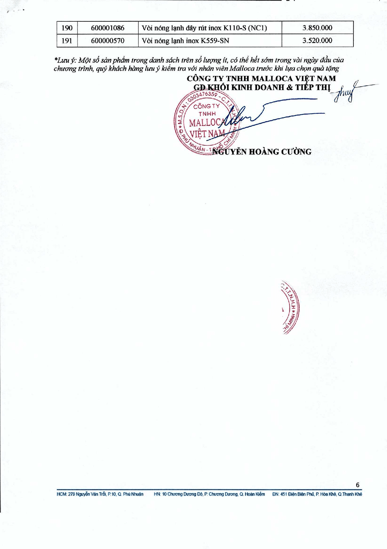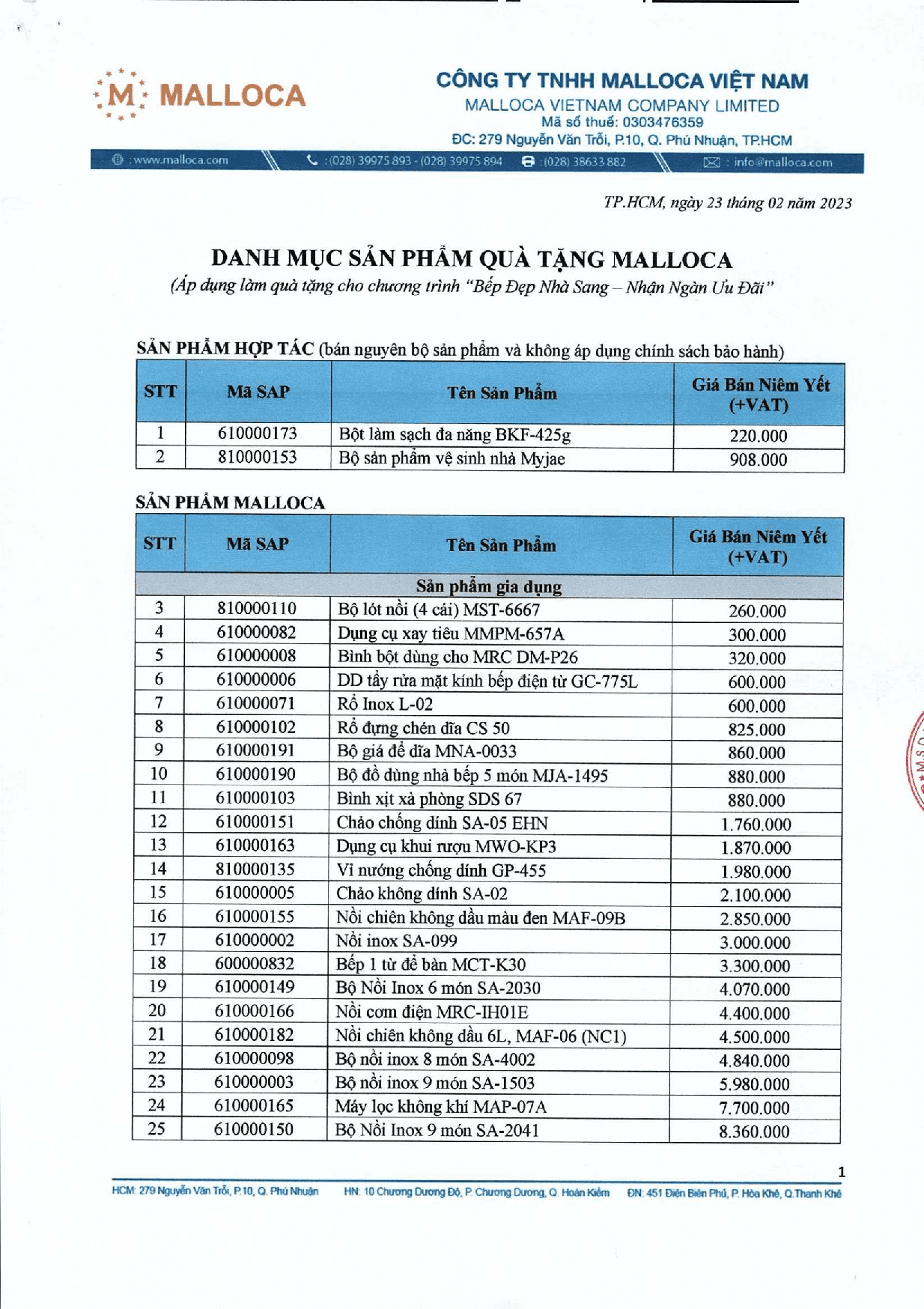 Theo đó, khi mua các sản phẩm của hãng bếp Malloca trong chương trình khuyến mãi, khách hàng sẽ nhận được quà tặng với nhiều trị giá khác nhau. Khách hàng lựa chọn 1 trong 2 mục khuyến mãi A - theo sản phẩm hoặc B - theo giá trị đơn hàng. Chương trình hiện tại được áp dụng tại tất cả các showroom siêu thị Bếp XANH.