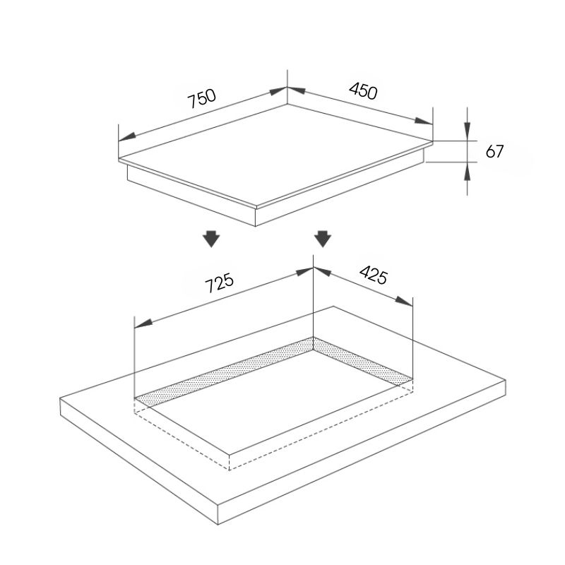 Bếp điện từ hồng ngoại EL-MS3881IR của thương hiệu Ecalite có kích thước vừa vặn, phù hợp cho mọi không gian bếp. Sản phẩm có chiều dài 75cm, chiều rộng 45cm và chiều cao 6.7cm (tương ứng với bề mặt cắt đá 72.5cm x 42.5cm) và được lắp đặt theo phương thức lắp âm, giúp tăng tính thẩm mỹ cho không gian bếp một cách hoàn hảo.
