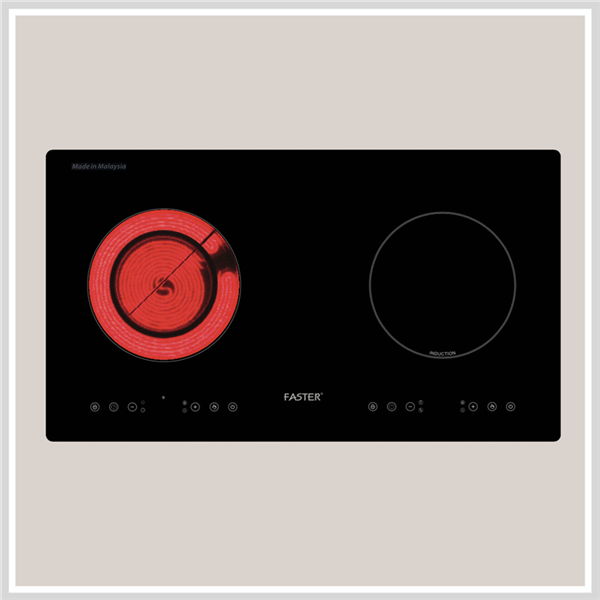Thiết kế thanh lịch, sang trọng: Bếp điện từ nhập khẩu Malaysia FS 638HI là dòng bếp điện từ 2 vùng nấu riêng biệt: 1 Vùng nấu điện (hồng ngoại) và 1 vùng nấu từ, thiết kế thanh lịch và sang trọng.