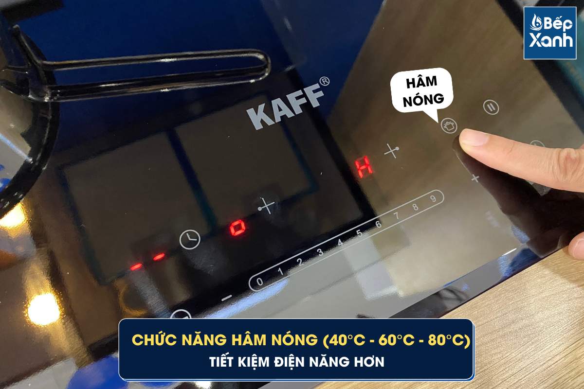 Tính năng này được cài đặt lên đến 99 phút, bếp 2 từ Kaff cho phép người dùng có thể cài đặt cho từng vùng nấu riêng biệt. Với những món ăn được định lượng thời gian từ trước thì đây chính là chức năng phù hợp dành cho bạn, giúp tiết kiệm thời gian hiệu quả.