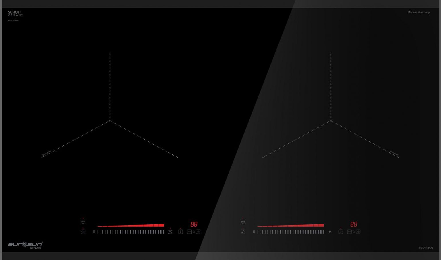 Bếp từ Eurosun EU – T895G sử dụng mặt kính gốm thủy tính vát cạnh – made in Germany. Bề mặt chống trầy xước, chịu lực cao, khả năng chịu nhiệt lên đến 1000oC, chịu sốc nhiệt đến 800oC