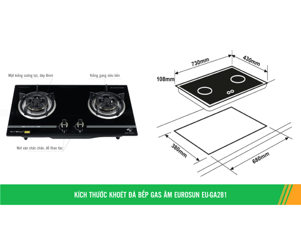 Bếp gas âm Eurosun EU-GA281 không chỉ bền đẹp mà còn rất an toàn, tiện lợi khi sử dụng với nhiều tính năng đặc biệt. Bếp được đặt âm nên vừa tiết kiệm không gian, vừa phù hợp với mọi thiết kế.