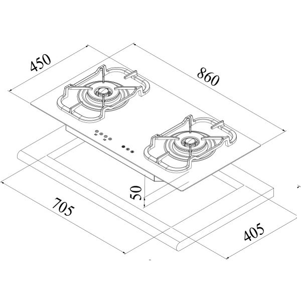 Thông số kỹ thuật của Bếp gas âm Dudoff Gaia 02Z3