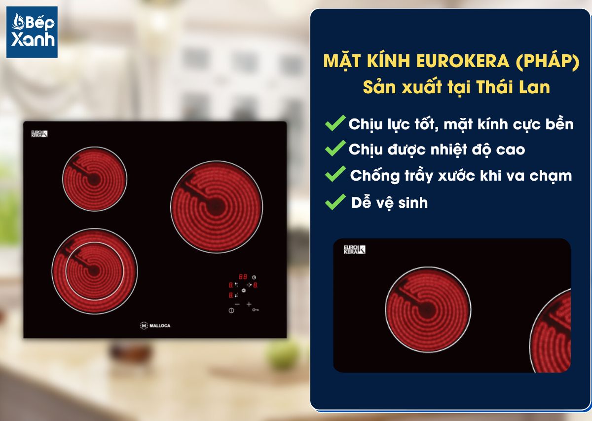 - Mặt kính cường lực EuroKera chịu lực, chịu nhiệt tốt