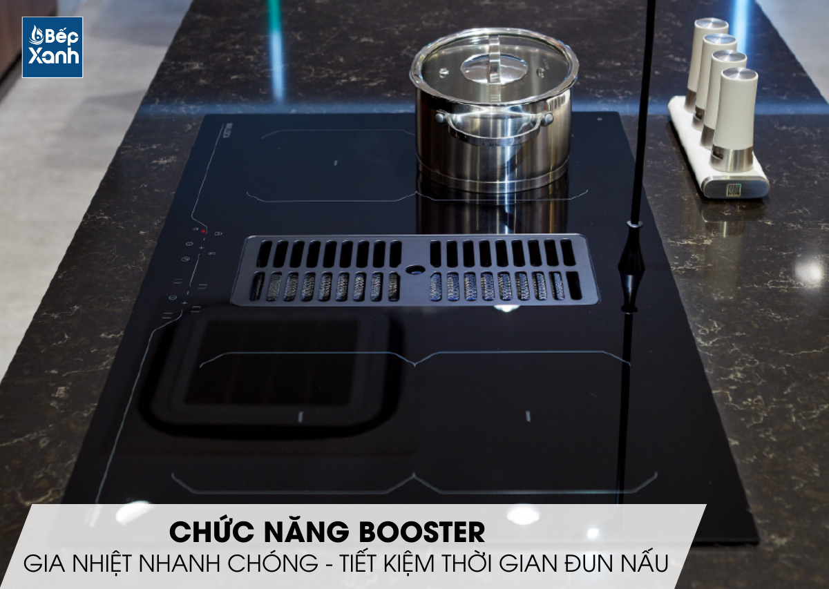 Ngoài 9 mức công suất gia nhiệt nhanh, mỗi vùng nấu còn có thêm mức công suất Booster khác nhau, vùng nấu gia nhiệt cao nhất lên đến 3000W. Với chức năng này, bạn sẽ tiết kiệm thời gian đun nấu hơn gấp 2 lần so với thông thường.