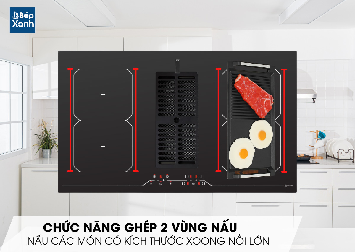 Nấu linh hoạt nhờ chức năng ghép 2 vùng nấu