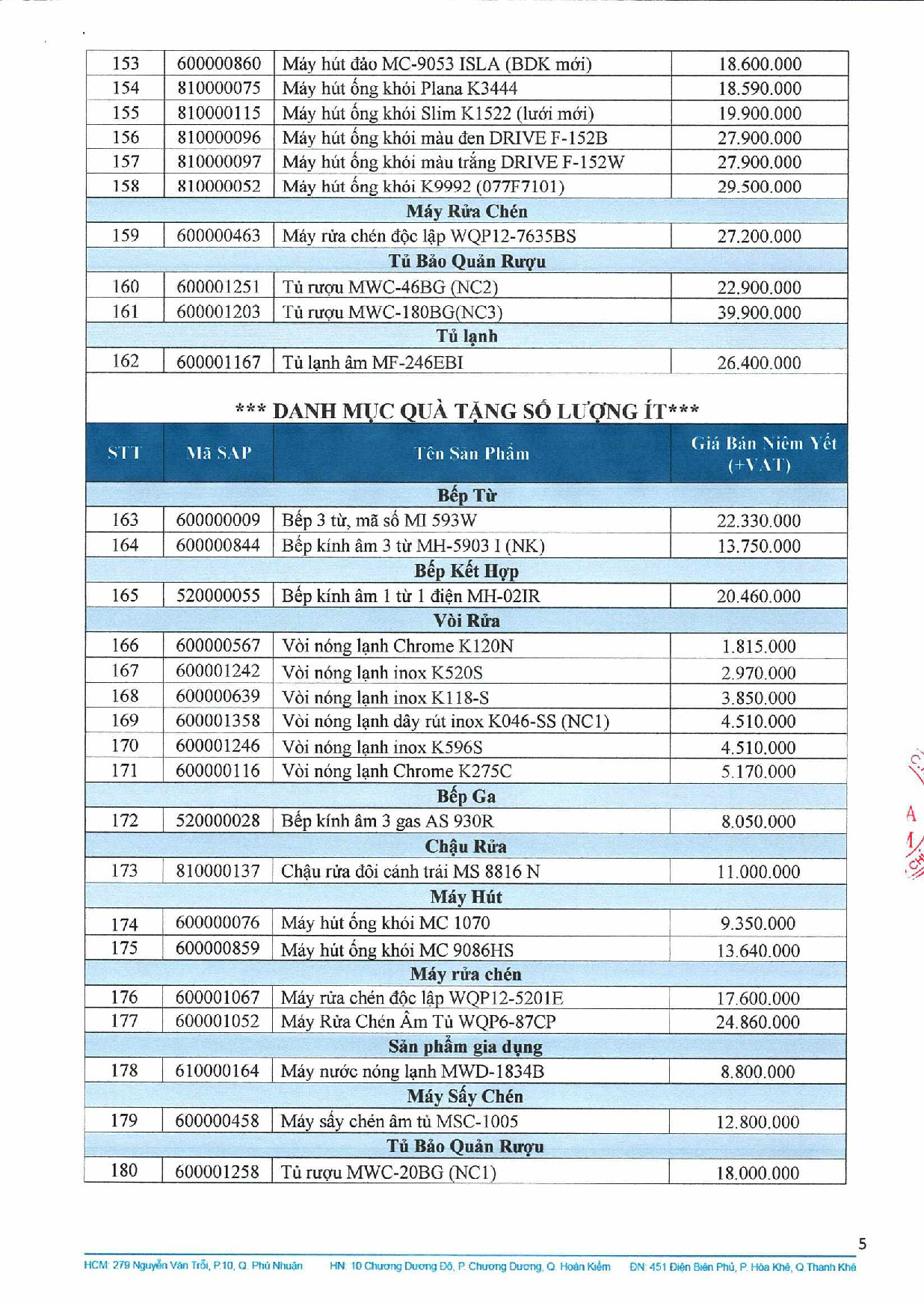 Theo đó, khi mua các sản phẩm của hãng thiêt bị bếp Malloca trong chương trình khuyến mãi, khách hàng sẽ nhận được quà tặng với nhiều trị giá khác nhau. Khách hàng lựa chọn 1 trong 2 mục khuyến mãi A - Quà tặng theo sản phẩm hoặc B - Quà tặng theo giá trị đơn hàng. Chương trình hiện tại được áp dụng tại tất cả các showroom siêu thị Bếp XANH.