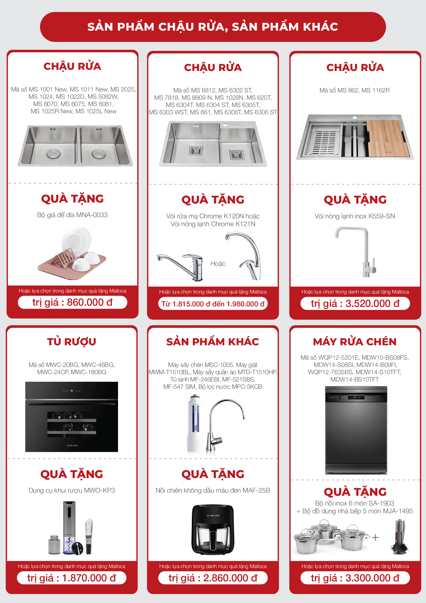 Khuyến mãi theo dòng chậu Malloca, máy rửa chén Malloca và sản phẩm điện máy