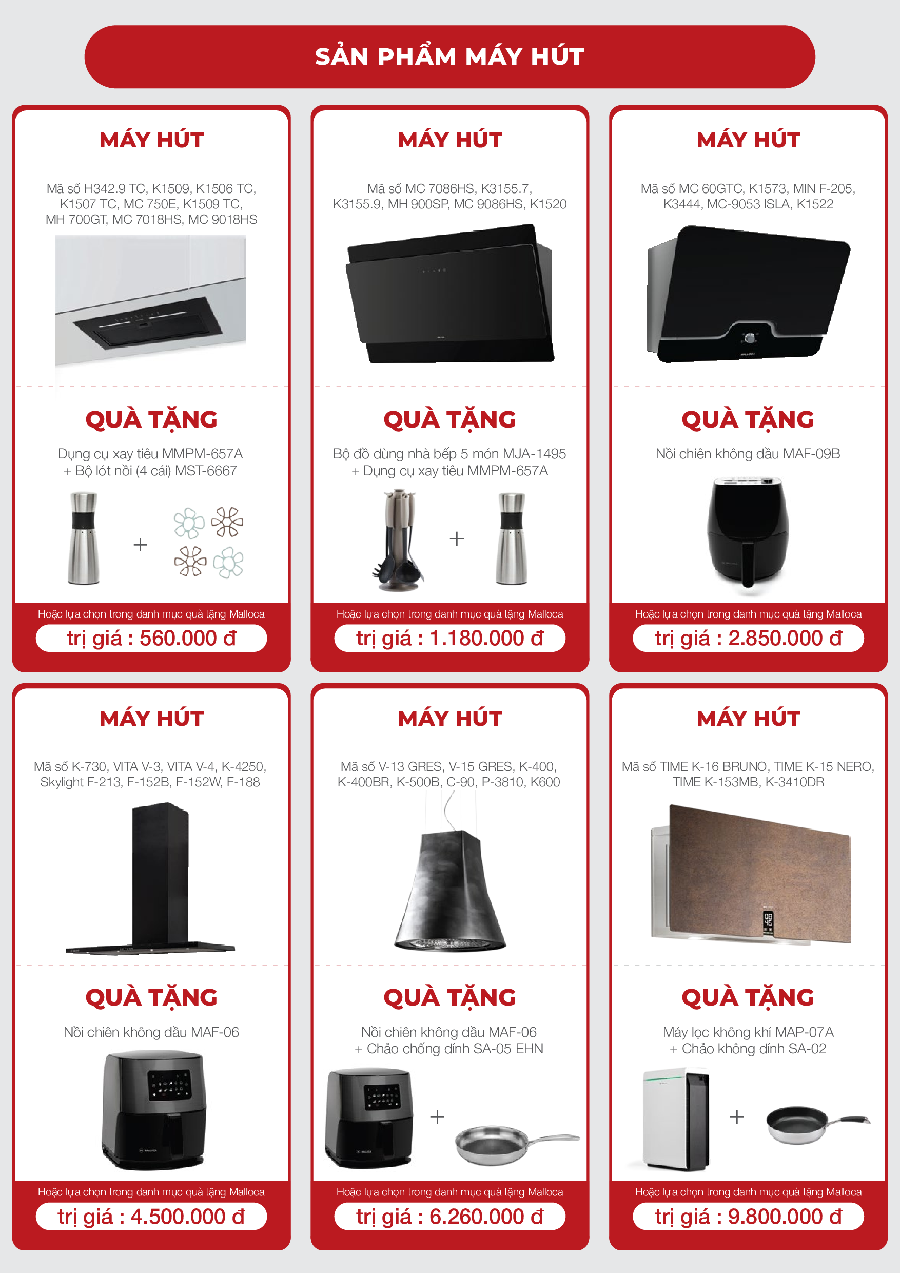 Khuyến mãi sản phẩm máy hút mùi Malloca