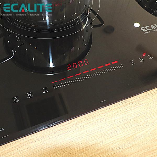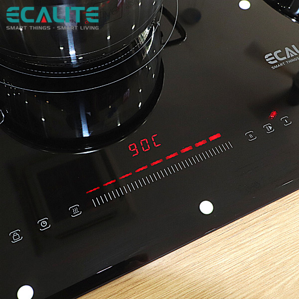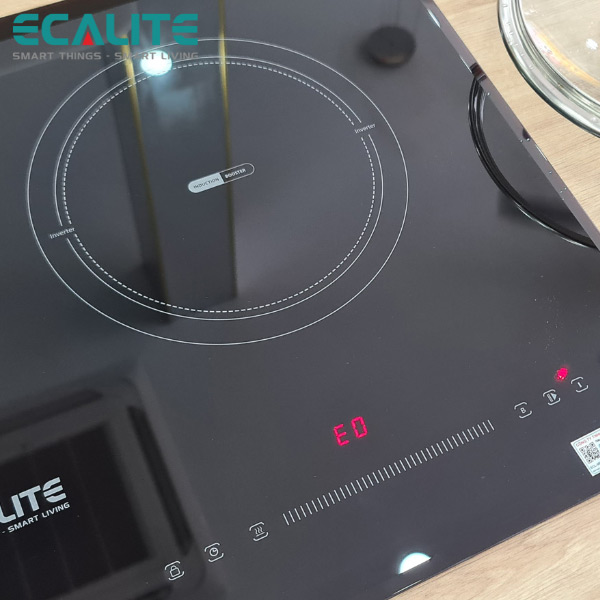 Bên cạnh đó các dòng bếp từ của hãng Ecalite còn có tính năng cảm ứng chống tràn. Trong quá trình nấu nướng khi nước hay thức ăn tràn đến bề mặt bàn phím điều khiển, cảm biến chống tràn sẽ được kích hoạt và hiện ký hiệu "CCCC”, sau đó bếp sẽ tự động ngắt để đảm bảo an toàn tối đa khi sử dụng cho người dùng.