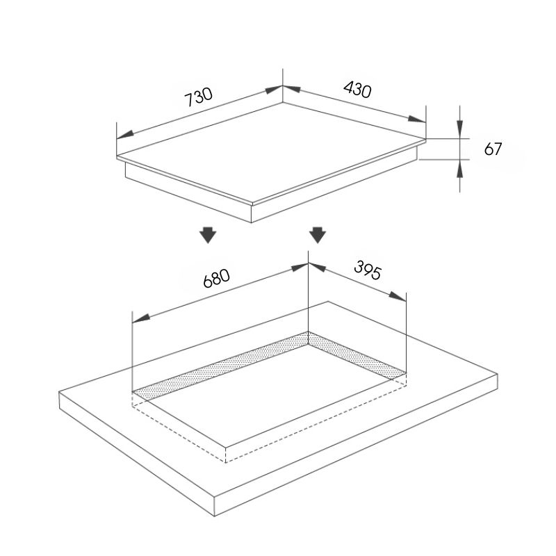 Bếp từ EL-MK2688II có kích thước nhỏ gọn với chiều dài 73cm, chiều rộng 43cm, cao 6.7cm, tương ứng với lỗ đá W680 x D395mm. Với kích thước này, bếp từ phù hợp với mọi không gian bếp của gia đình và tối ưu diện tích hơn để bạn bố trí thêm các thiết bị bếp khác như nồi cơm điện, lò nướng, lò vi sóng,...