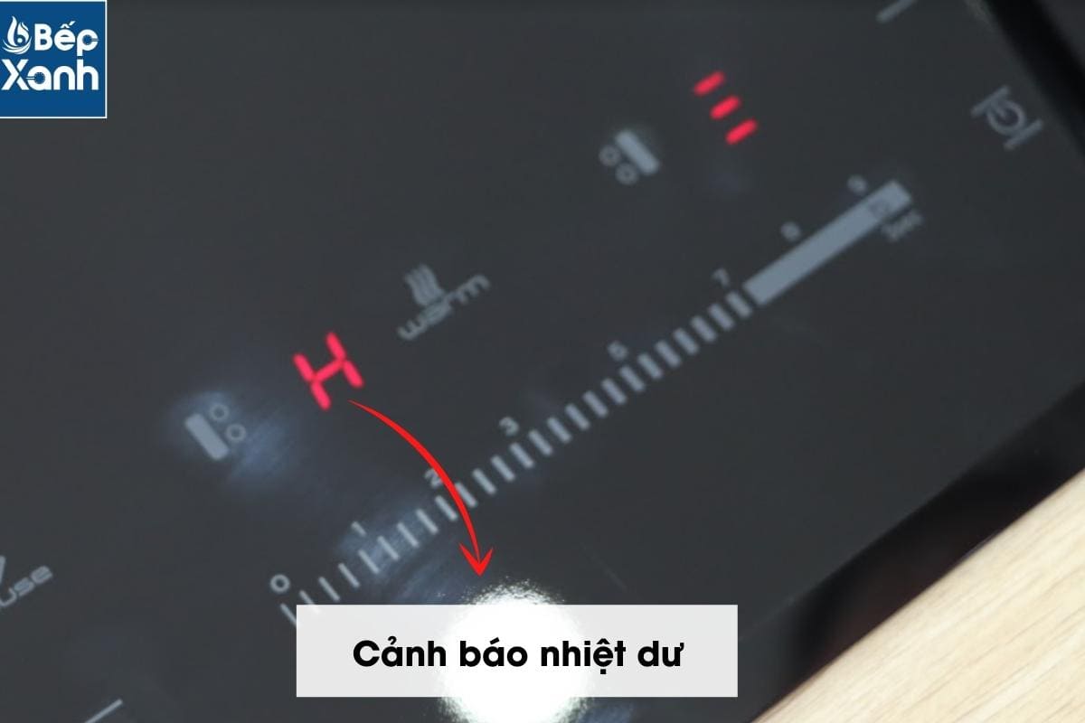 Tính năng cảnh báo nhiệt dư: Khi nấu xong nếu mặt bếp còn nóng sẽ còn hiển thị chữ "H" để cảnh báo không vội vàng lau chùi bếp.