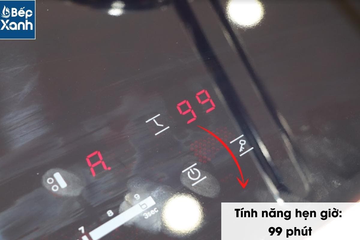 Tính năng hẹn giờ: Bếp được trang bị tính năng hẹn giờ lên đến 99 phút. Khi hết thời gian cài đặt, bếp sẽ tự động ngắt.