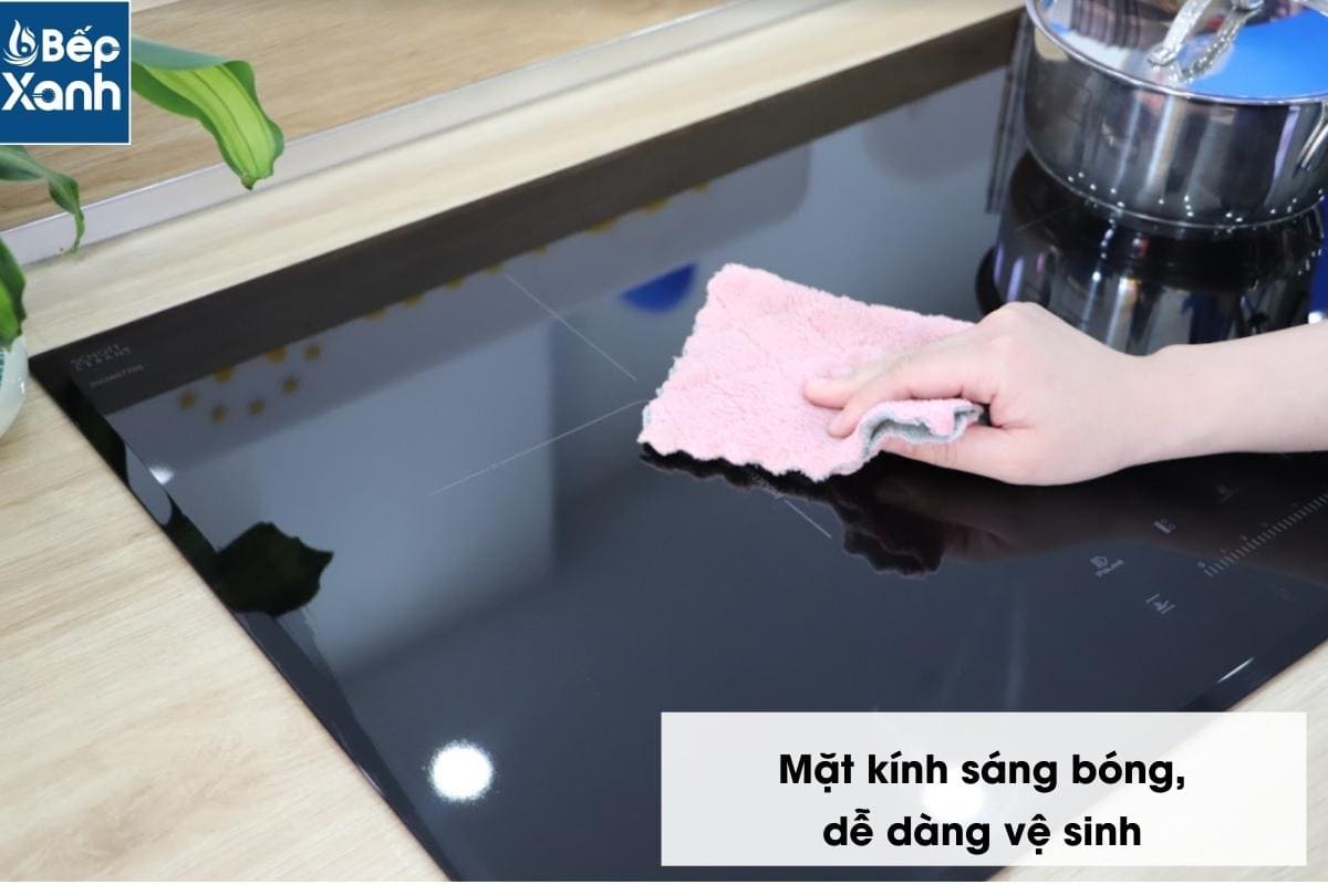 Thiết kế với mặt kính đen Schott Ceran cao cấp, sáng bóng dễ dàng vệ sinh. Có khả năng chịu nhiệt tốt, mặt kính có khả năng chống va đập mạnh, trầy xước.