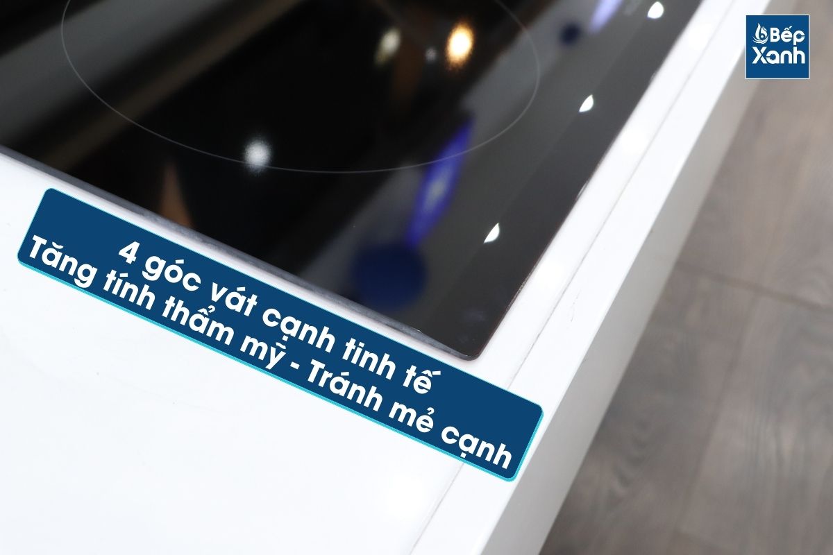 Ngoài ra, để tăng độ bền bỉ cũng như tính thẩm mỹ cho tổng thể, phần viền bếp được vát cạnh khéo léo đem đến độ mỏng cực ấn tượng, nhờ đó tạo cho sản phẩm sự tinh tế, sang trọng và tránh tình trạng mẻ cạnh khi tác động từ bên ngoài.