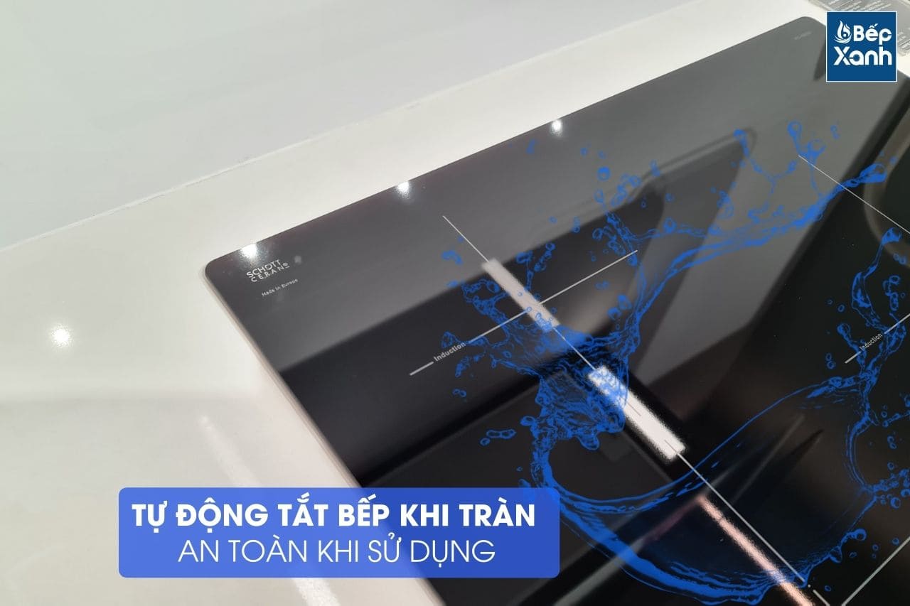 Nếu bếp phát hiện có hiện tượng tràn trong khu vực điều khiển, bếp sẽ tự động ngắt và có âm thanh cảnh báo. Sau đó, bạn có thể lau sạch chúng rất dễ dàng và không lo bị bỏng.