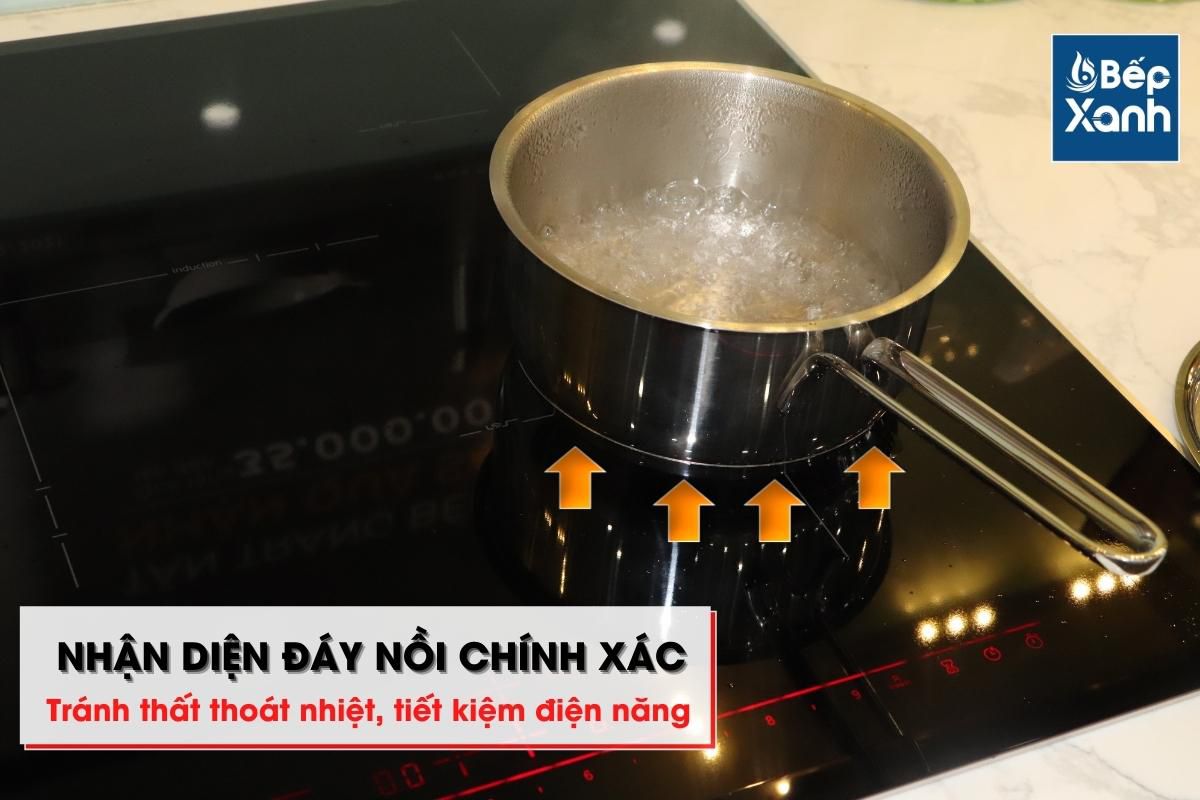 Khi sử dụng bếp, bạn có thể hoàn toàn yên tâm việc thất thoát nhiệt vì bếp có khả năng nhận diện đáy nồi để truyền nhiệt một cách chính xác. Do đó, nhiệt chỉ tập trung duy nhất ở phần đáy nồi giúp thức ăn mau chín hơn, tiết kiệm điện năng và thời gian đun nấu.