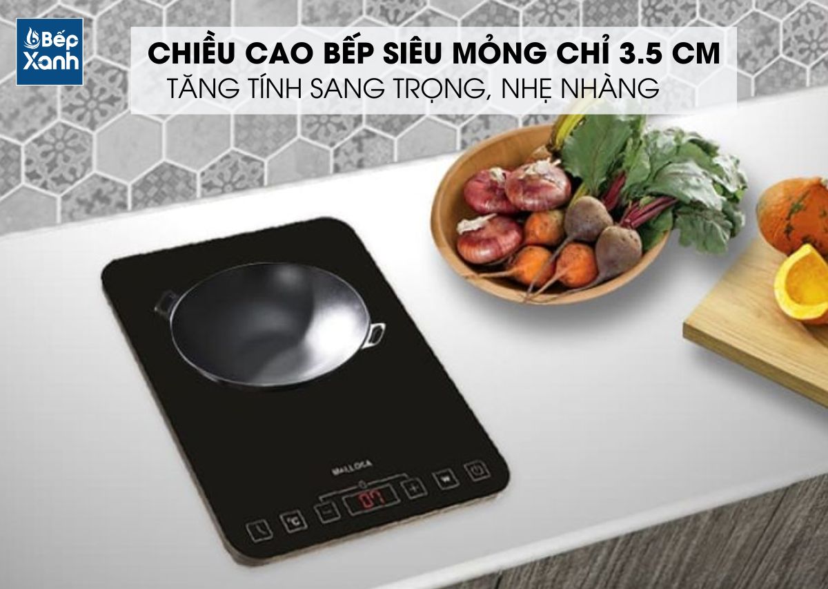 Bếp từ đơn Malloca có thiết kế mỏng nhẹ, công suất mạnh mẽ lên đến 2000W cho phép bạn nấu được nhiều món ăn ngon và bổ dưỡng.