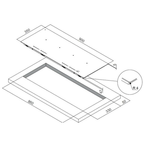 - Kích thước cắt mặt đá: 860 x 330mm.