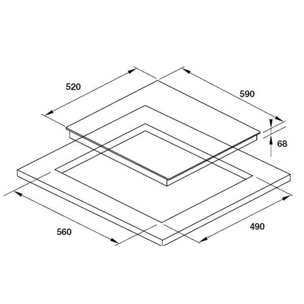 - Kích thước lắp đặt (RxS): 560 x 490mm