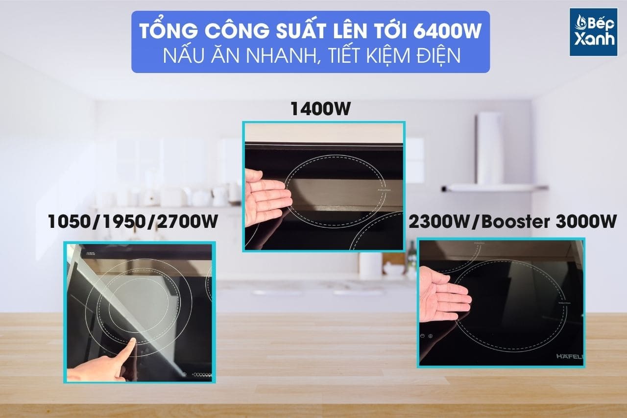 3 vùng nấu rộng rãi cho gia đình 3 - 4 thành viên.