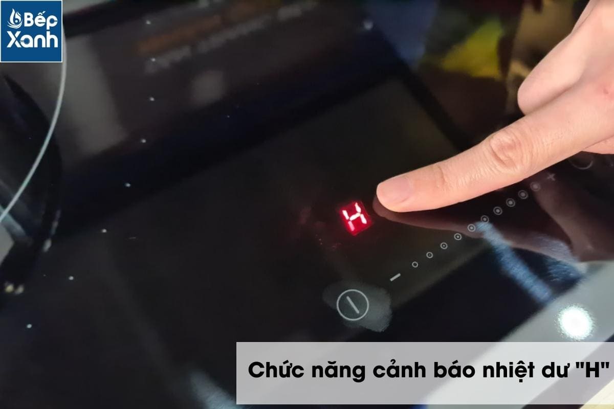 Khi tắt bếp nếu mặt bếp còn nóng thì sẽ có biểu tượng "H" là nhiệt độ trên 60 độ C, "h" nhiệt độ từ 45-60 độ C để cảnh báo mặt bếp còn nóng, tránh lau chùi.