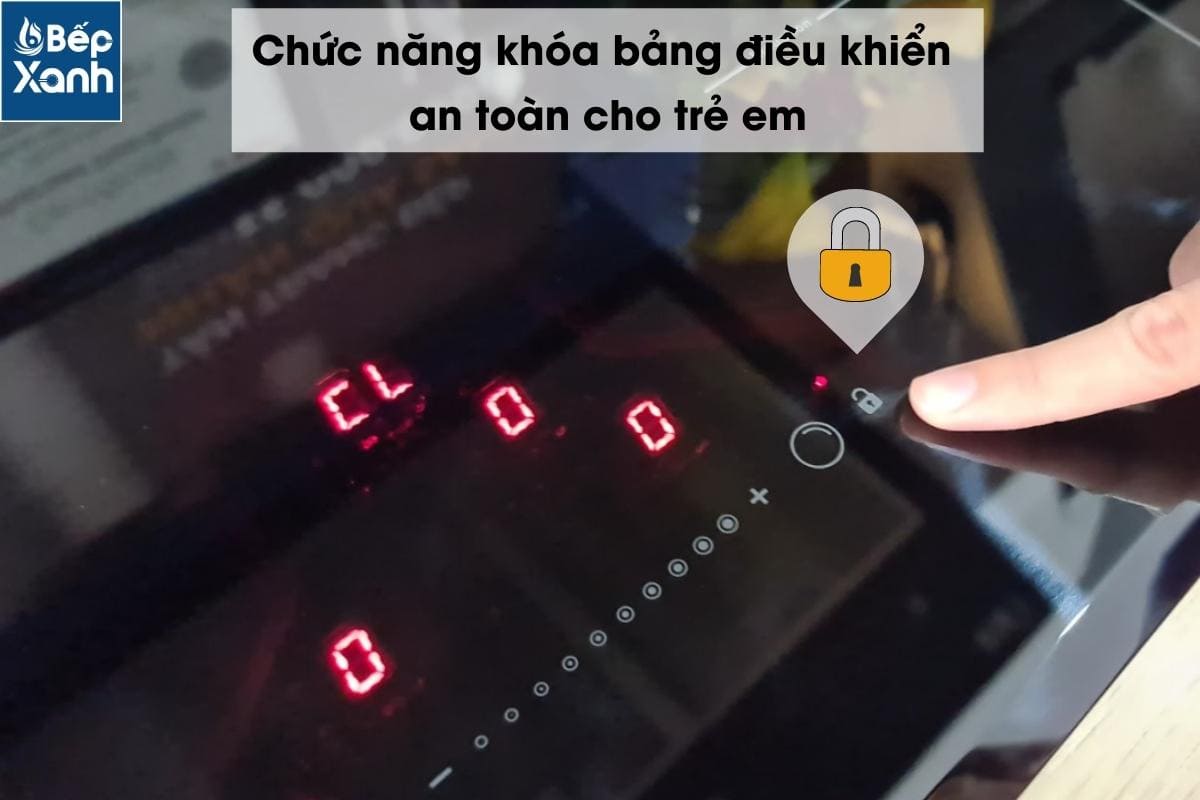 Để hạn chế rủi ro, bảo vệ trẻ trong quá trình sử dụng bếp thì chức năng khóa an toàn này phù hợp với những gia đình có con nhỏ, trẻ tinh nghịch. Khi kích hoạt chức năng này sẽ khóa toàn bộ bảng điểu khiển.
