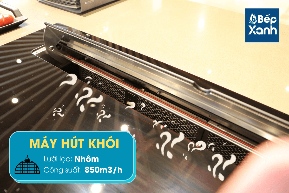 Thiết kế độc đáo: 4 vùng nấu từ + máy hút khói