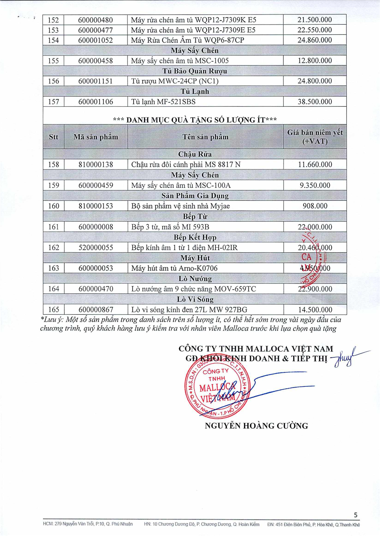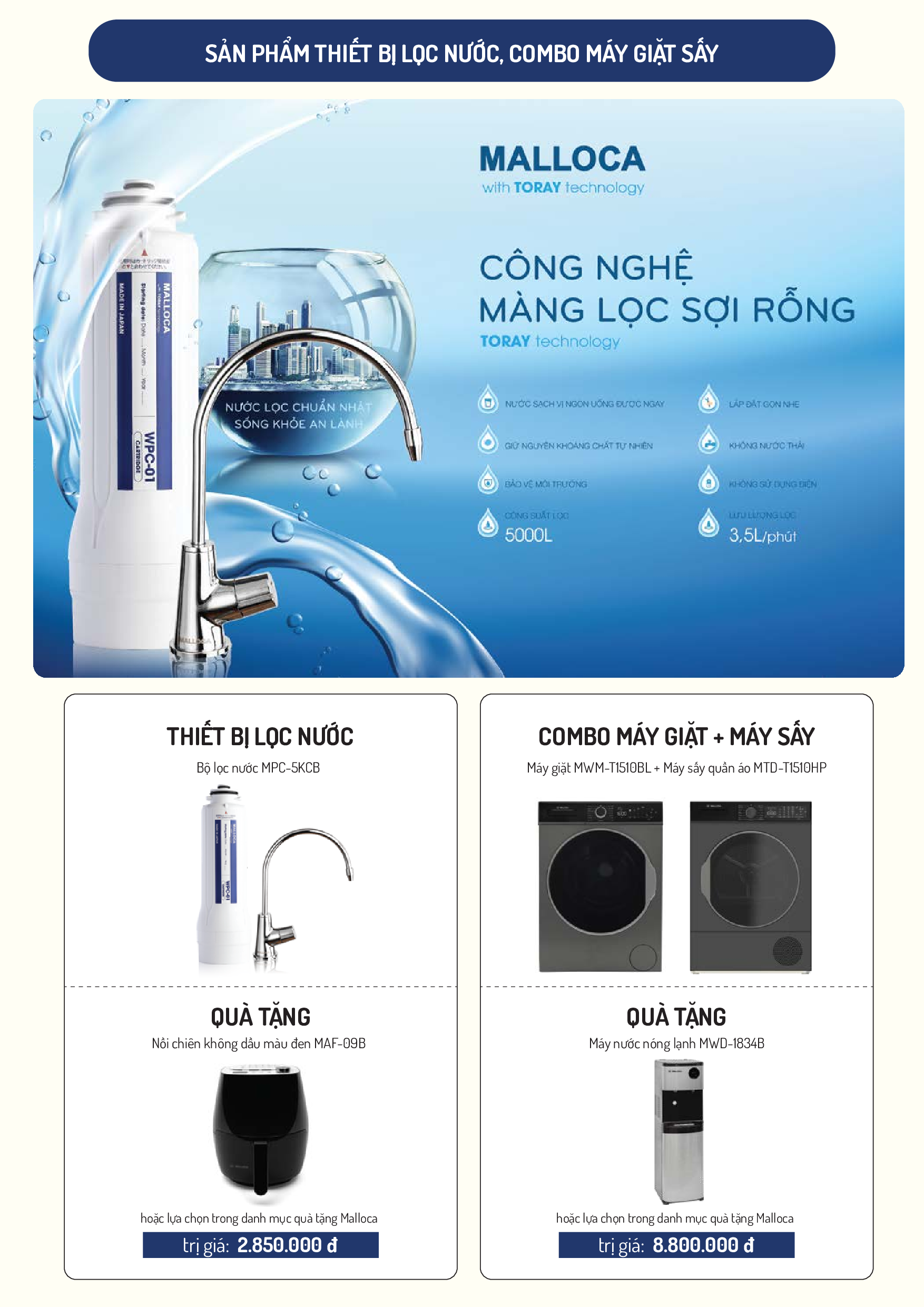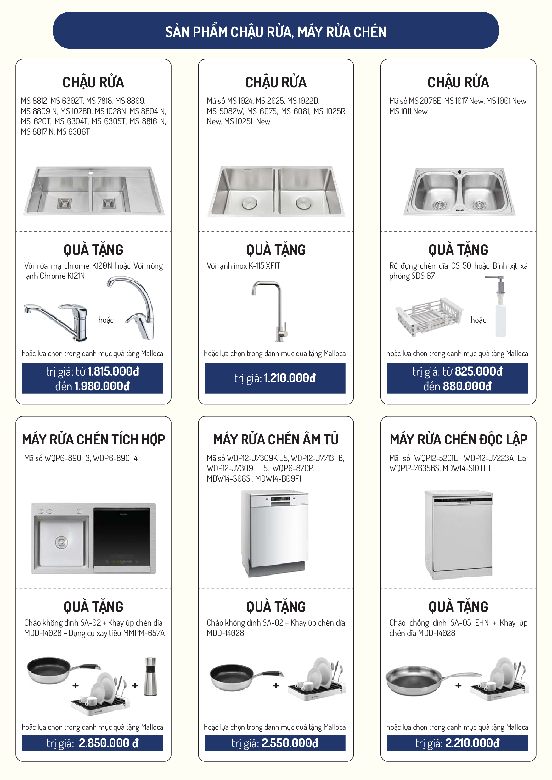 Theo đó, khi mua các sản phẩm của hãng Malloca trong chương trình khuyến mãi, khách hàng sẽ nhận được quà tặng với nhiều trị giá khác nhau. Khách hàng lựa chọn 1 trong 2 mục khuyến mãi A - theo sản phẩm hoặc B - theo giá trị đơn hàng.