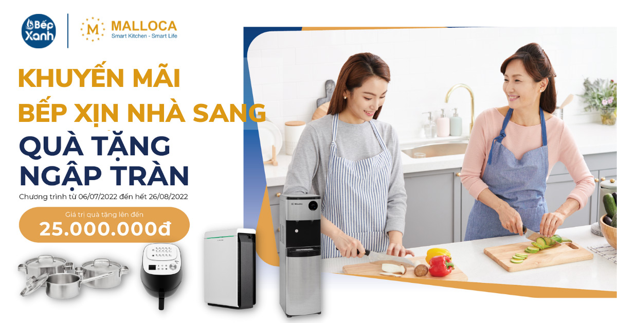 Chương trình khuyến mãi Malloca bắt đầu từ ngày 06/07/2022 đến hết 26/08/2022, áp dụng tại tất cả các showroom của Bếp XANH.