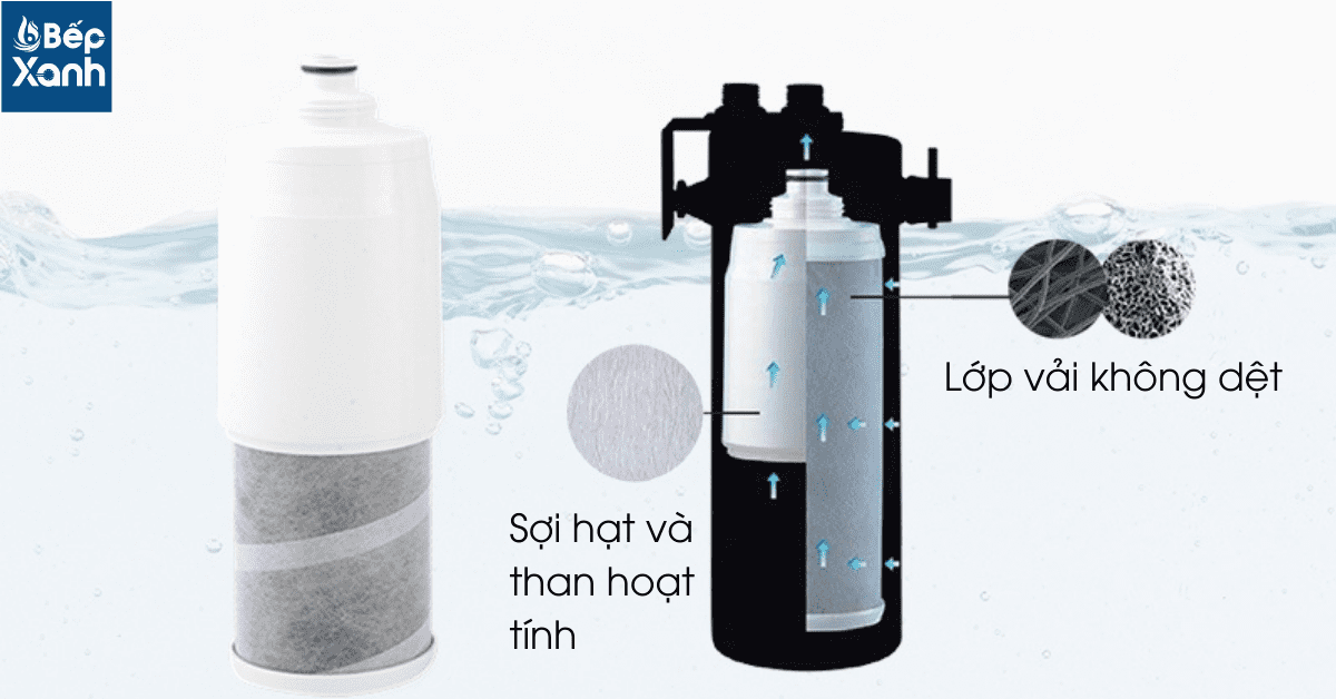 Hệ thống lọc có 3 lớp cao cấp tích hợp trong một lõi lọc.