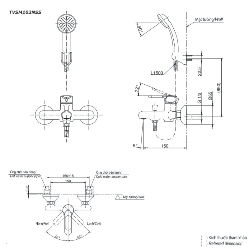 Kích thước bộ sen tắm nóng lạnh TOTO TVSM103NSS: