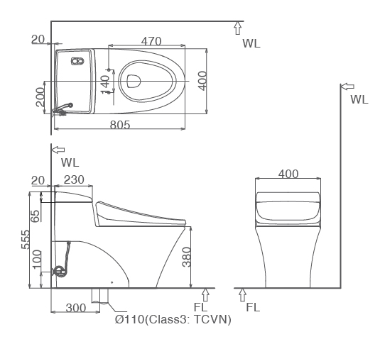 Bản vẽ kỹ thuật Bồn cầu Inax AC-1017VRN