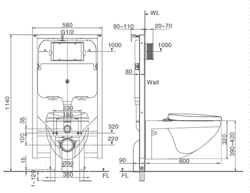 Két nước của bồn được đặt âm tường nên càng tiết kiệm được diện tích. Do đó, có thể nói Bồn cầu treo tường inax là sản phẩm tiết kiệm diện tích tối đa.